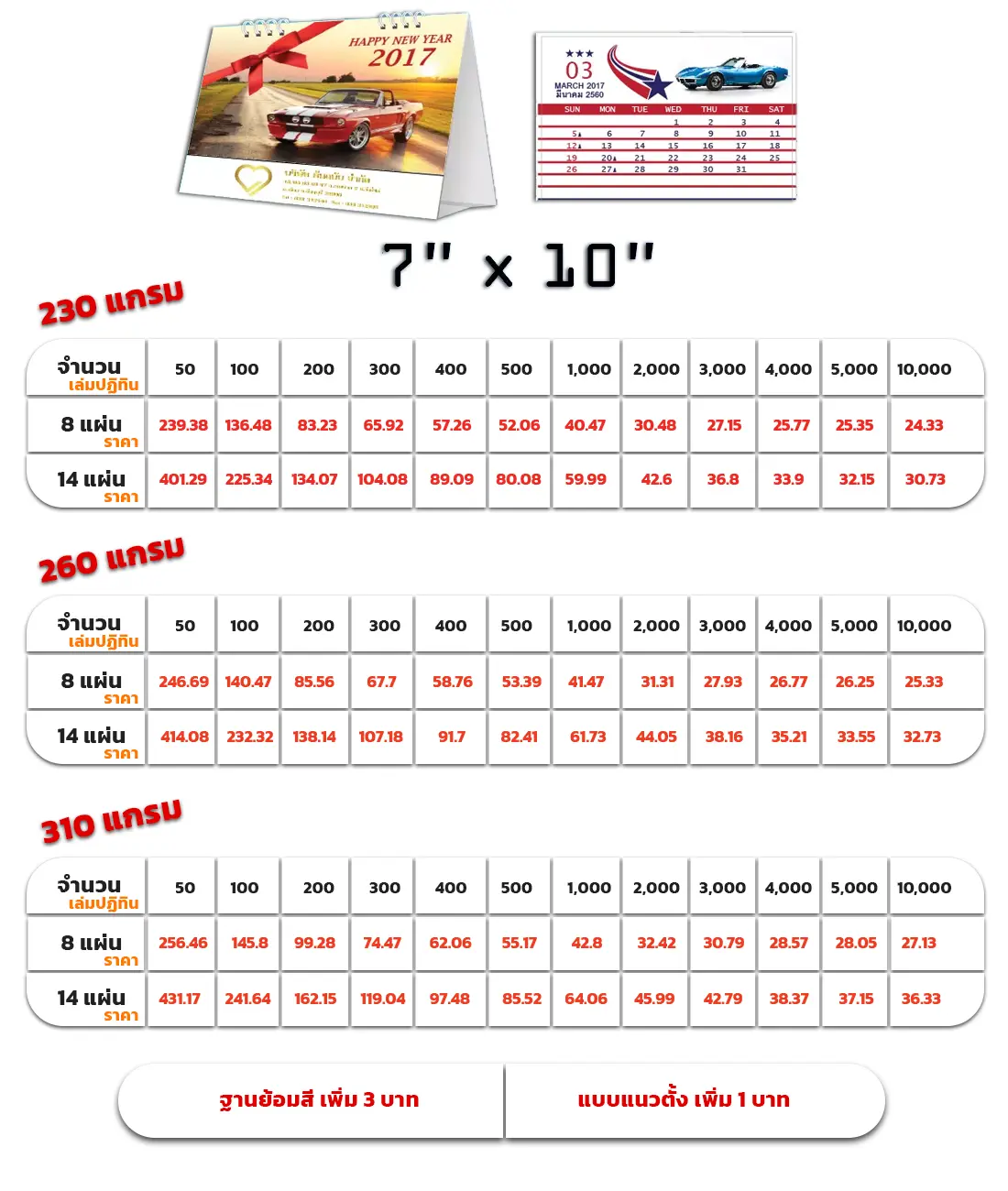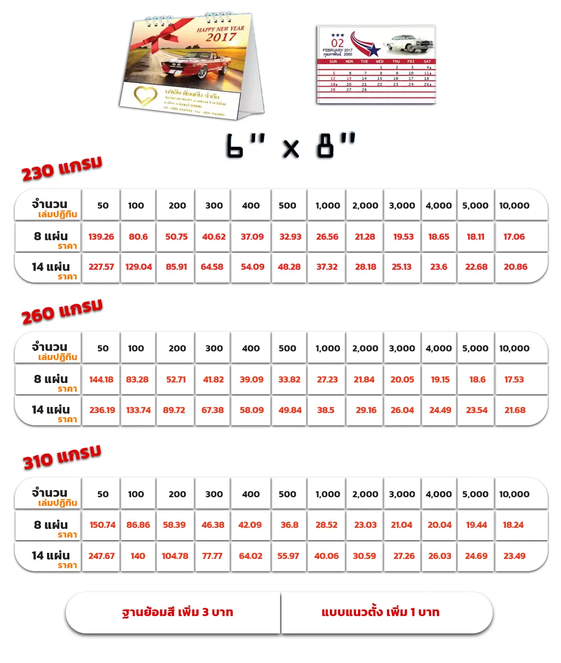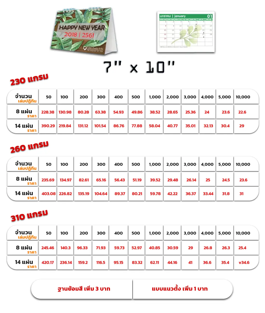 เนื้อปฏิทินกระดาษอาร์ตการ์ด ขนาดเต็มขาตั้ง พิมพ์ออฟเซ็ท 4 สี 2 หน้า